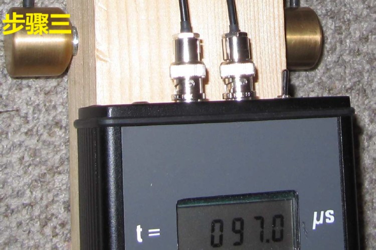 3)打開超聲儀,傳輸時(shí)間將以μs的形式顯示在屏幕上。打開開關(guān)后如果顯示“0000”,表示正常;